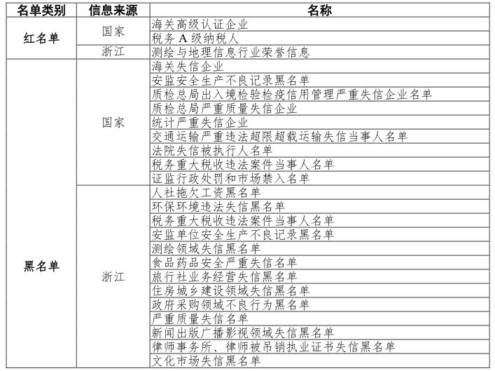 二是建立信用红黑名单管理制度。以红黑名单为依据开展信用联合奖惩,截至2019年6月已归集红黑名单信息349.9万条,红名单覆盖3个部门,共计3类232.7万条,黑名单覆盖21个部门,共计22类117.2万条。红黑名单信息通过浙江省公共信用信息平台,推送至各监管部门的业务办理系统中,在进行许可办理、资金给付、荣誉认定等行政事项中作为重要参考。